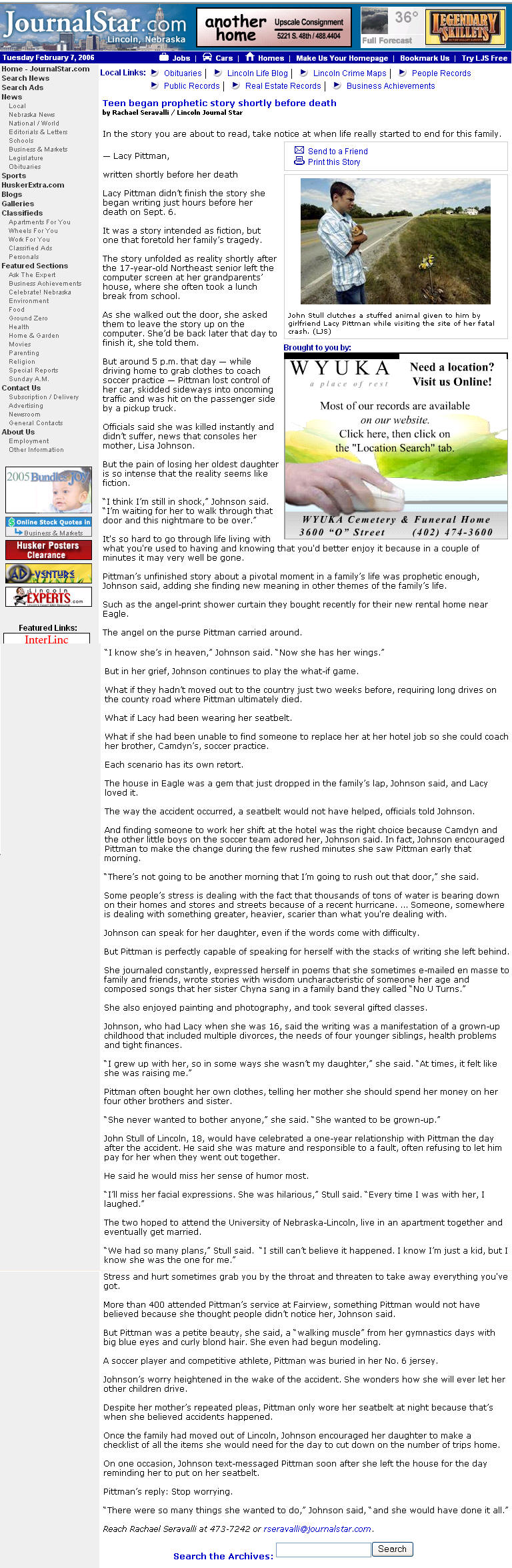 by girlfriend Lacy Pittman while visiting the site of her fatal crash. (Lincoln