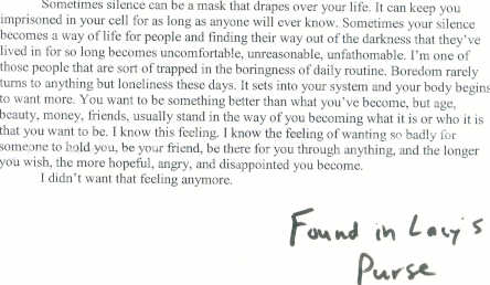 story that she was writing in the afternoon of the day of